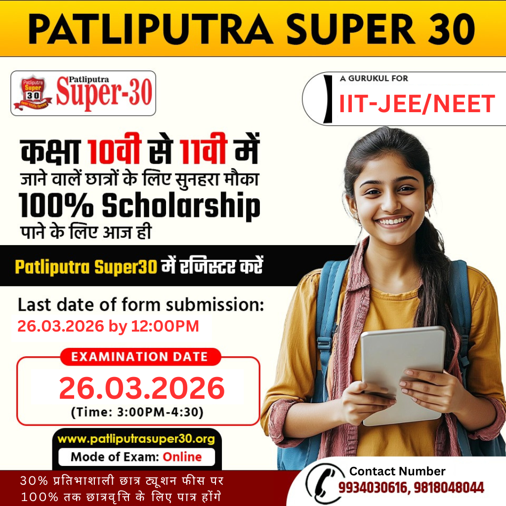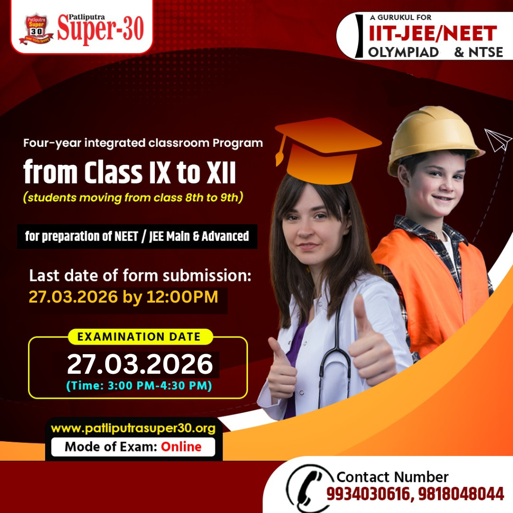 - Admission at Patliputra super 30 will be on the basis of Talent Search Test and interview